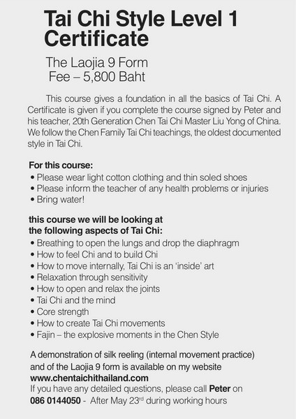 Peter Jenkinson is from Manchester, England and has studied Chen Style Tai Chi for 15 years. Firstly with Howard Walmsley in Manchester, then through a course with 19th Generation Grand Master Zhu Tiancai and is now a student of 20th Generation Chen Style Tai Chi Master LiuYong in Lianyungang, China. He is certificated from Master Zhu and from Master LiuYong for the Laojia form.